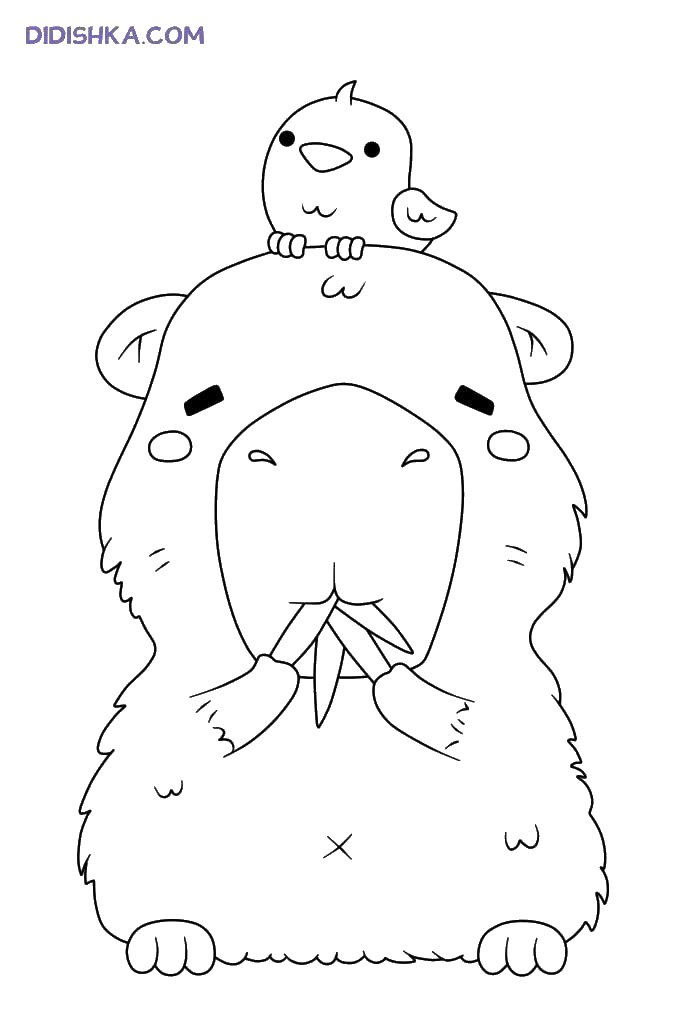 Капибара с птичкой на голове