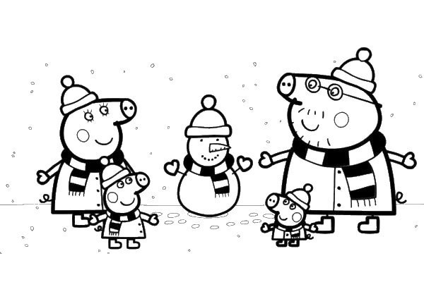 Пеппа со своей семьей слепили снеговика