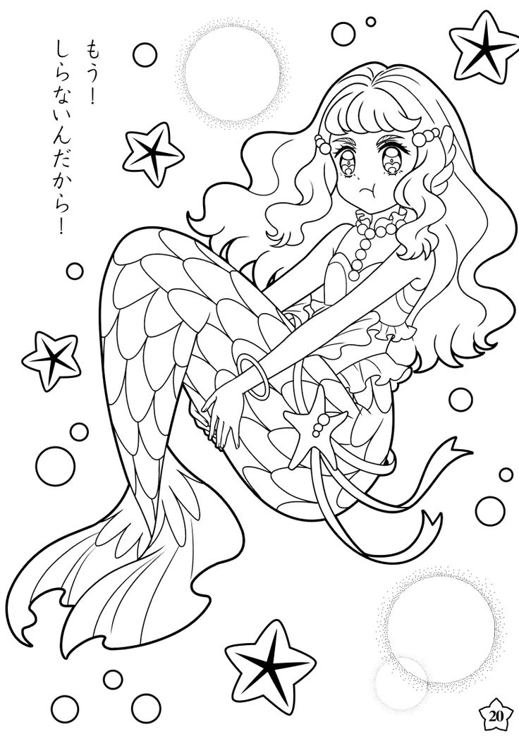 Анимешная девочка русалка для раскрашивания