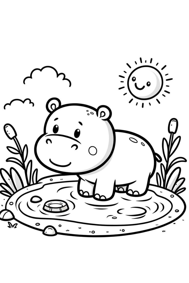 Бегемот в водоёме раскраска