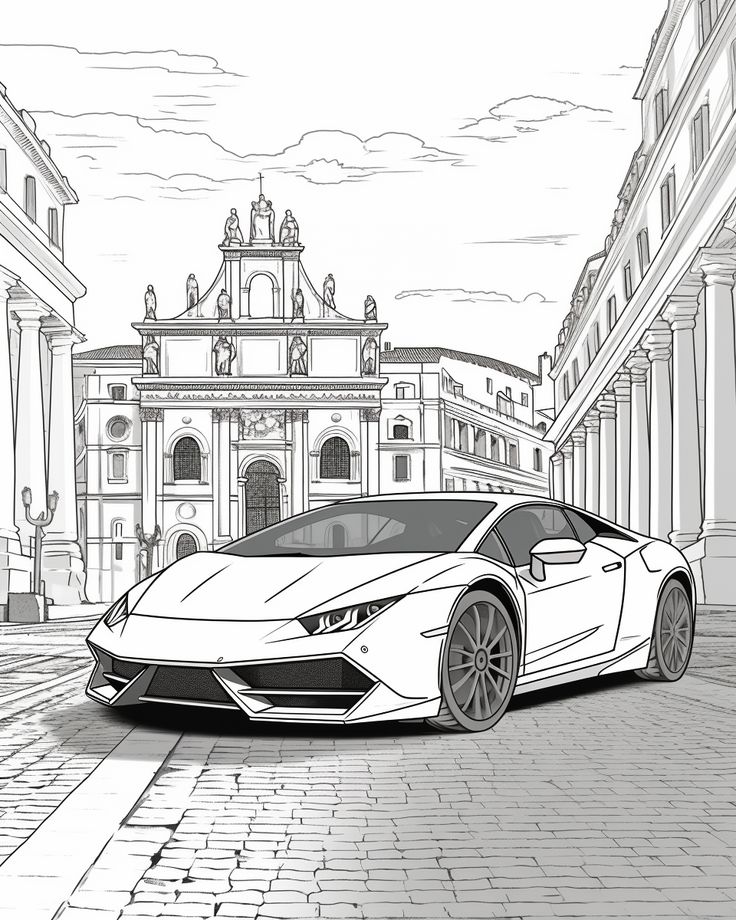 Красивая раскраска Ламборгини в городе
