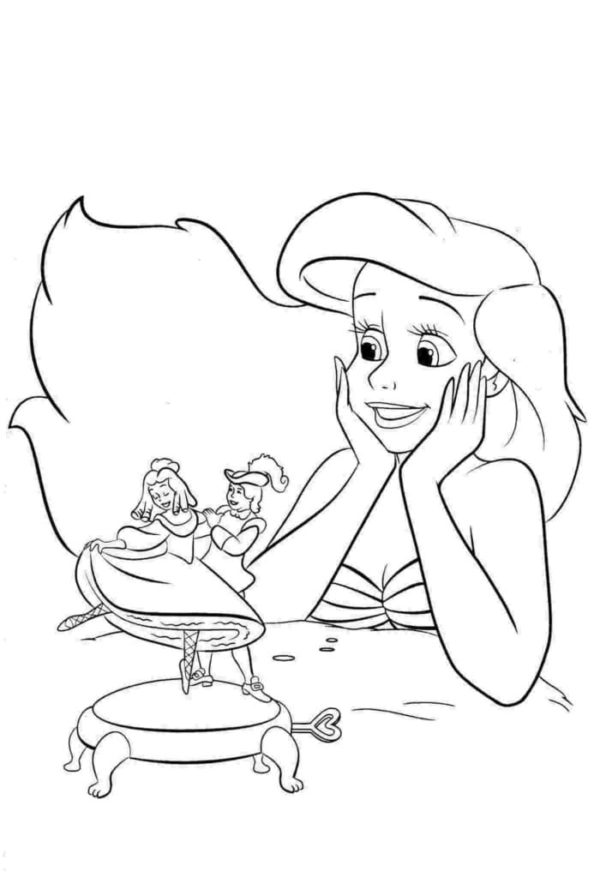 Радостная Ариэль для раскрашивания