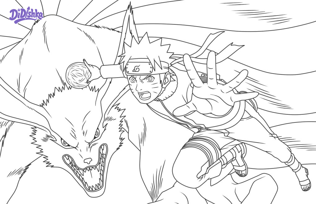 Раскраска Наруто и Девятихвостый Демон-Лис Курама