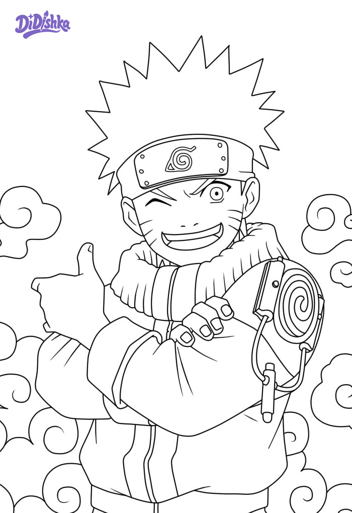 Улыбающийся Наруто для раскрашивания