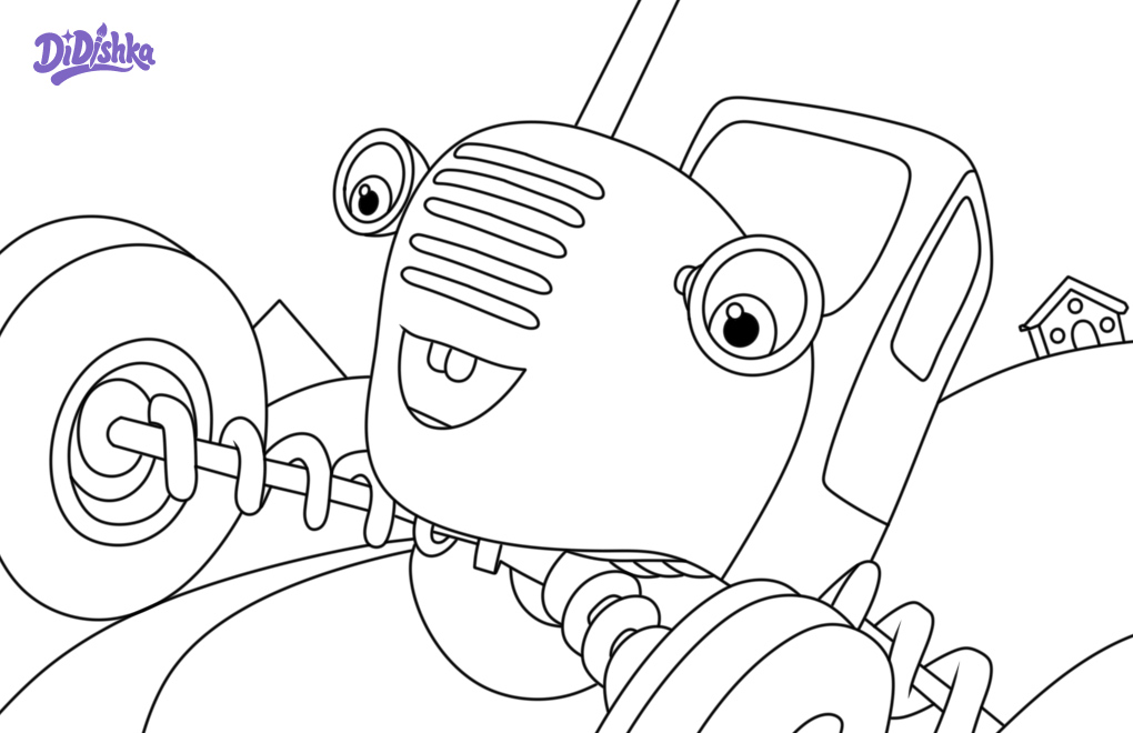 Веселый синий трактор