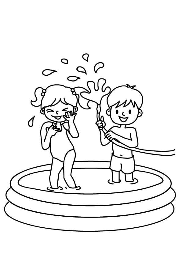 Дети балуются с водой в бассейне