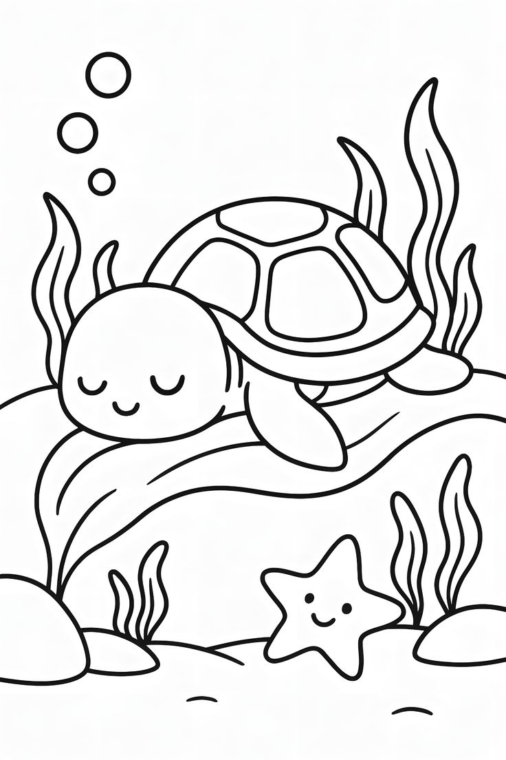 Раскраска спящей черепашки