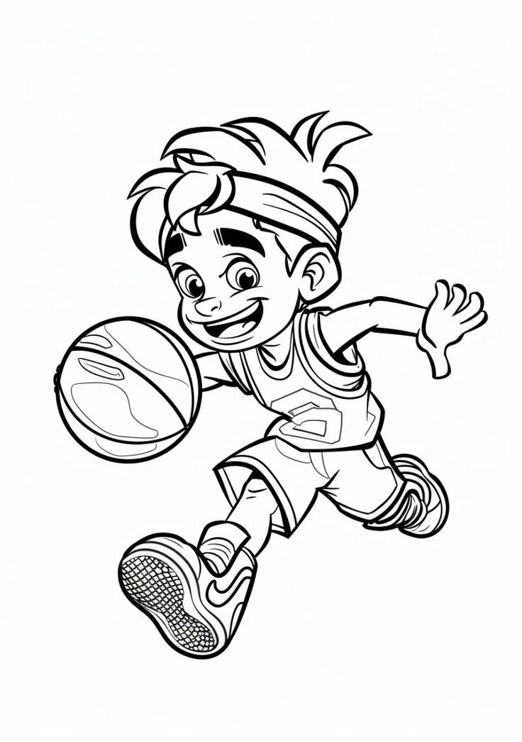 Счастливый мальчик бежит с баскетбольным мячом