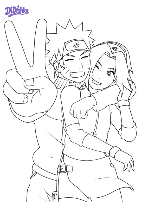 Наруто и Сакура раскраска