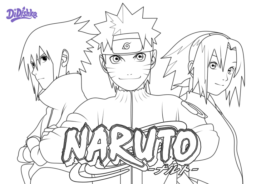 Раскраска с главными героями аниме Наруто