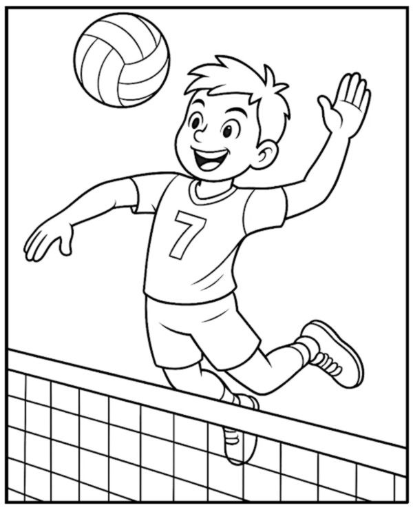 Мальчик подпрыгивает чтобы отбить волейбольный мяч