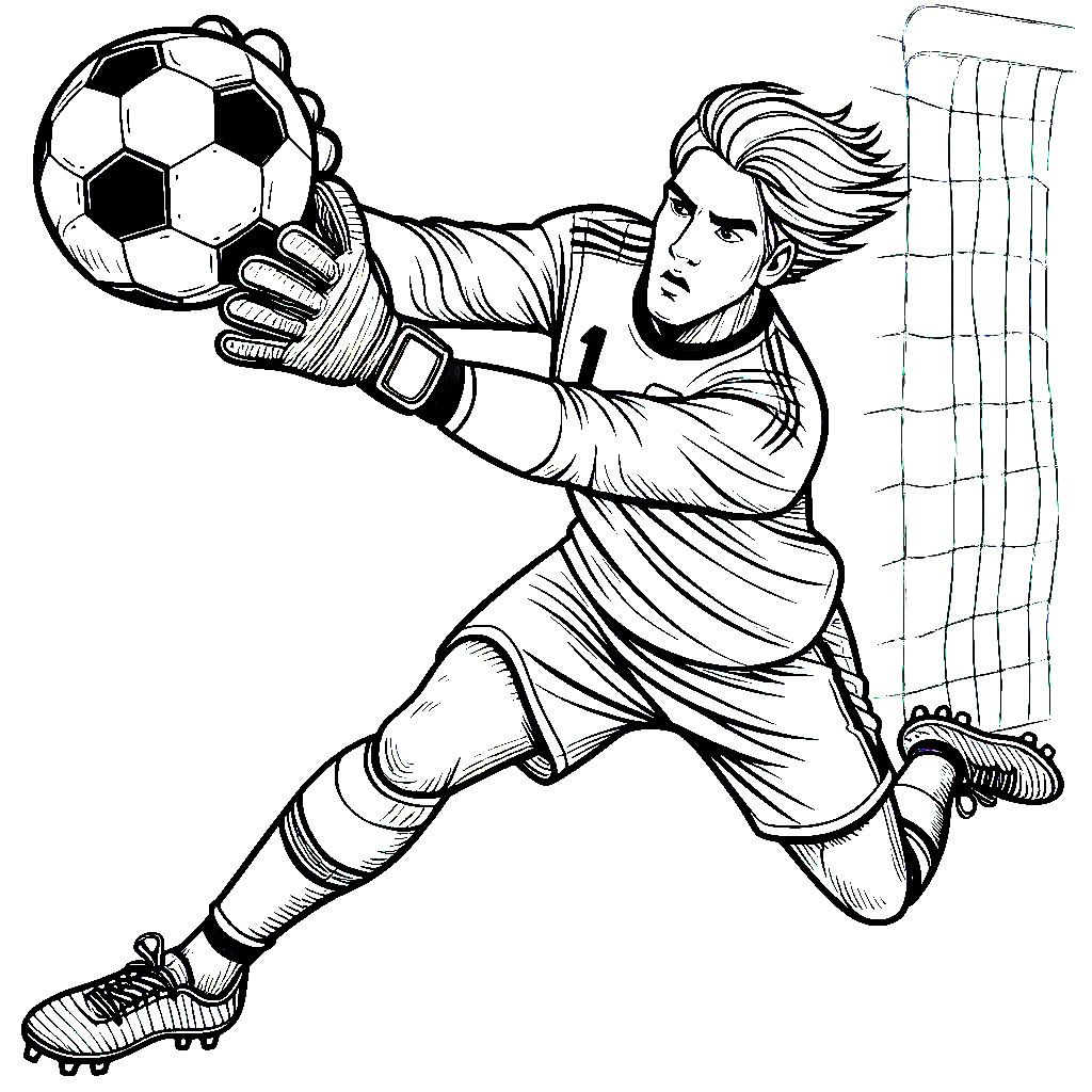 Вратарь ловко ловит футбольный мяч раскраска
