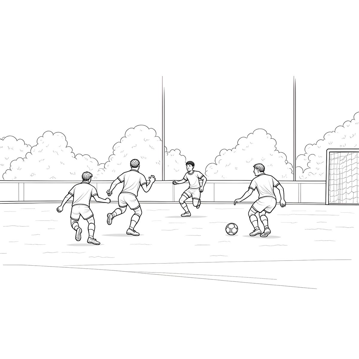 Раскраска ребята играют в футбол