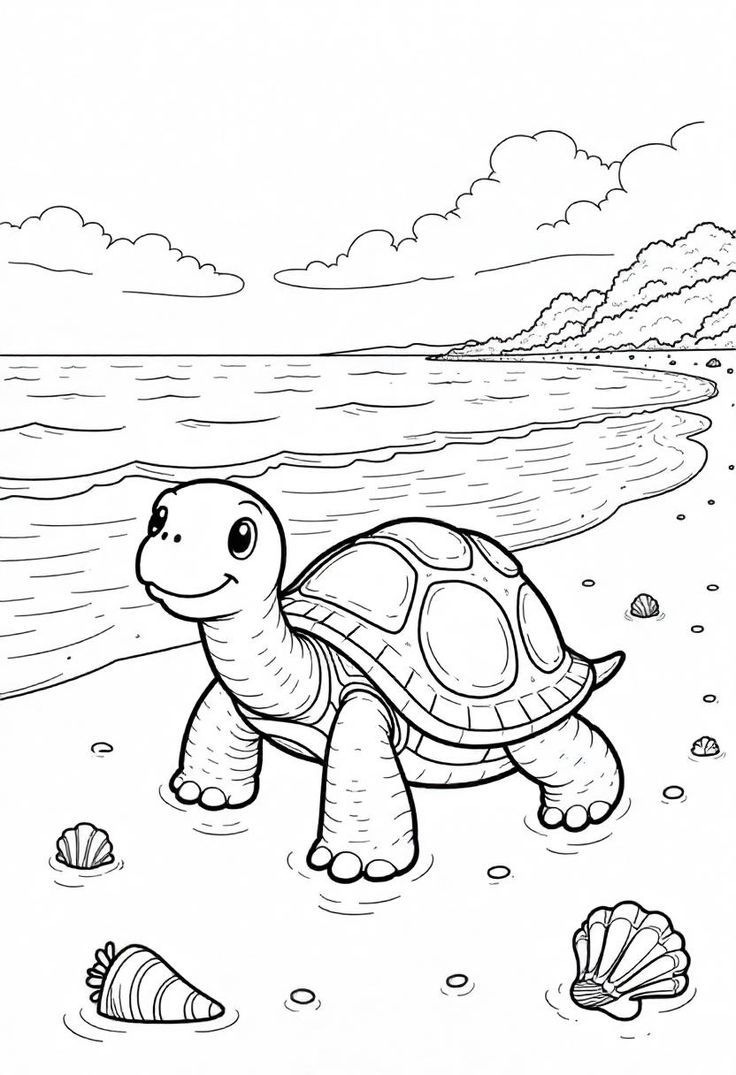 Черепашка на берегу океана для разукрашивания