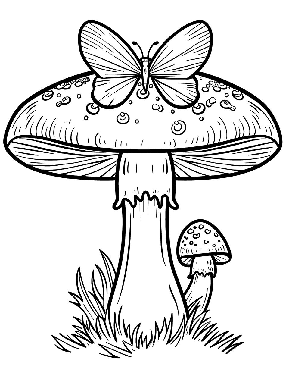 Грибы с бабочкой для раскрашивания