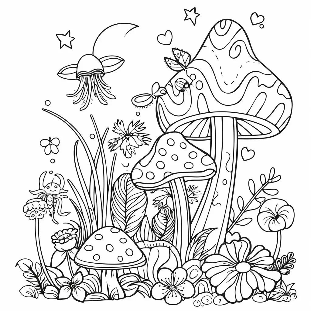Красивая раскраска грибов в лесу
