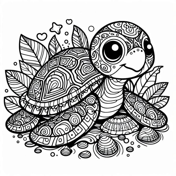 Черепаха детальная раскраска с узорами