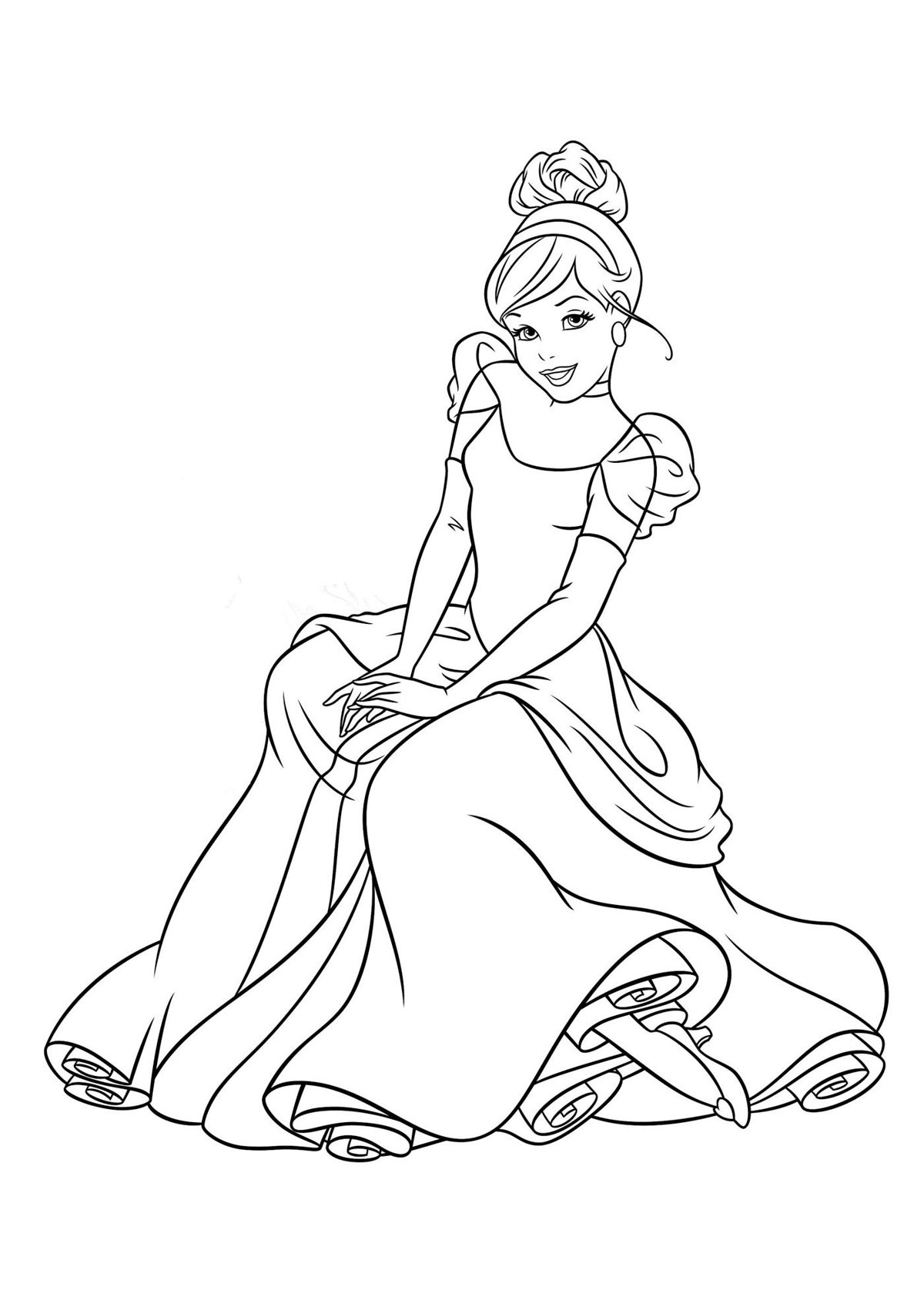 Раскраска сидячей Золушки в платье