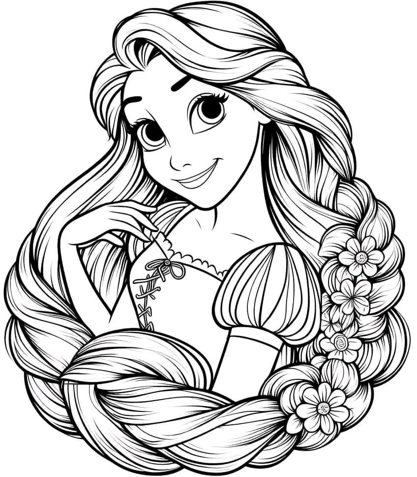 Портрет Рапунцель раскраска с четким контуром