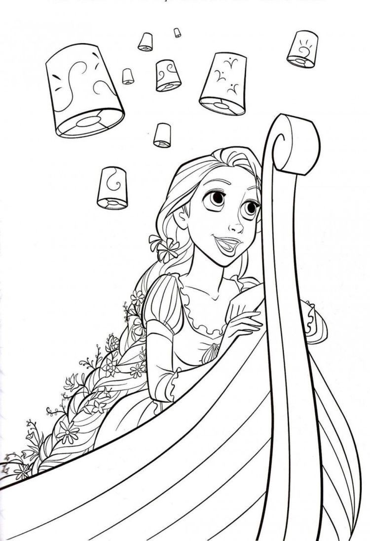Рапунцель на лодке среди фонариков раскраска