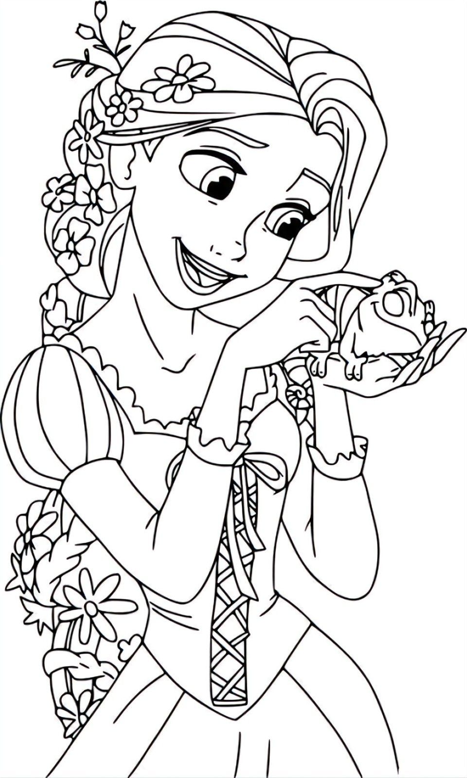Раскраска с Рапунцель и очаровательным Паскалем