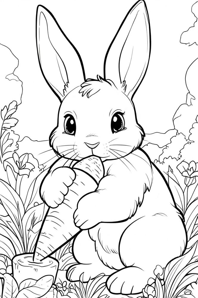 Кролик кушает морковку раскраска с фоном