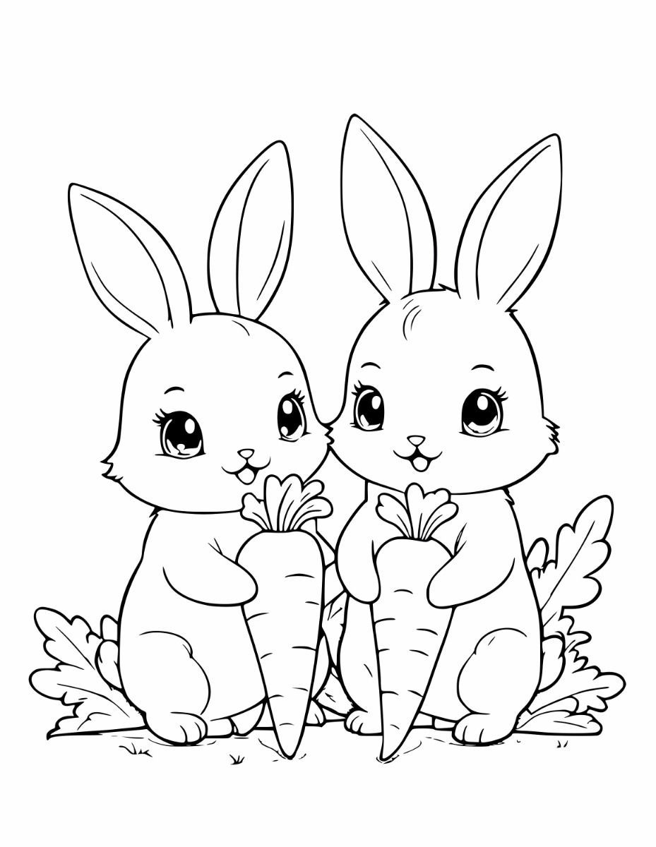 Милашки крольчата держат морковку