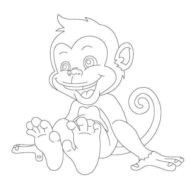 Радостная сидячая обезьяна раскраска для детей