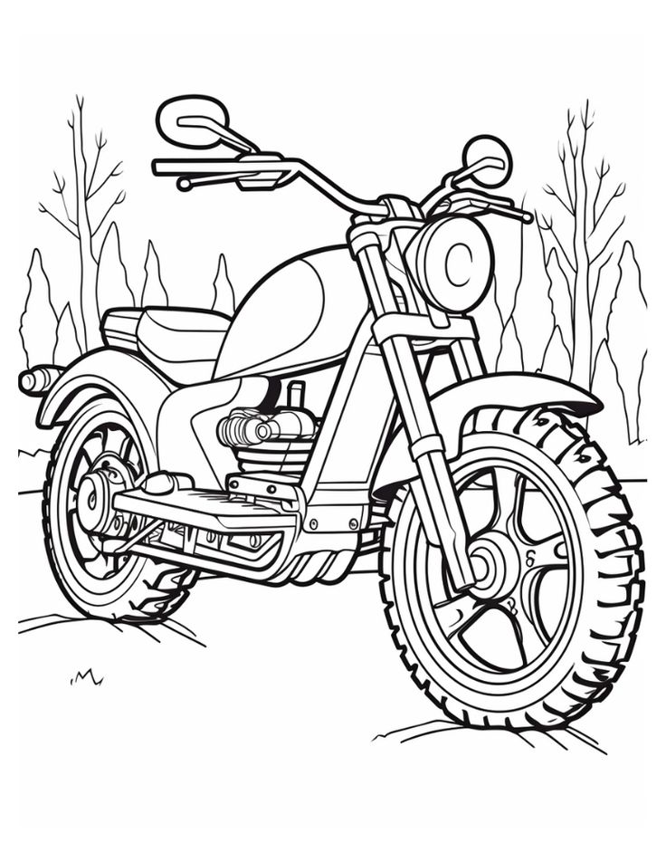 Контурный рисунок мотоцикла для раскрашивания