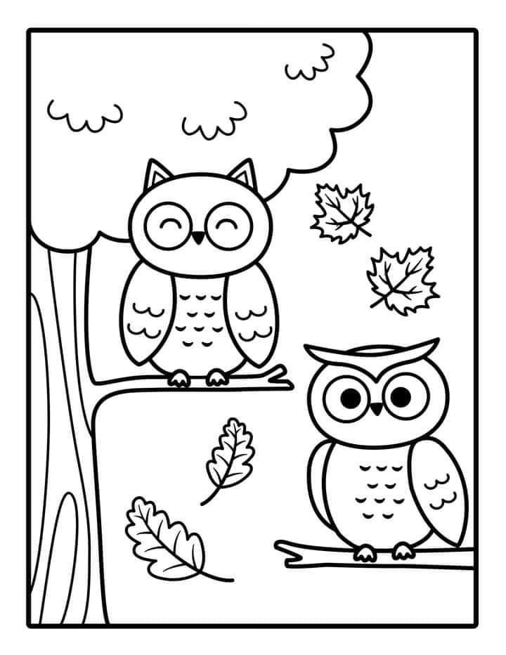 Лёгкая раскраска двух сов на дереве