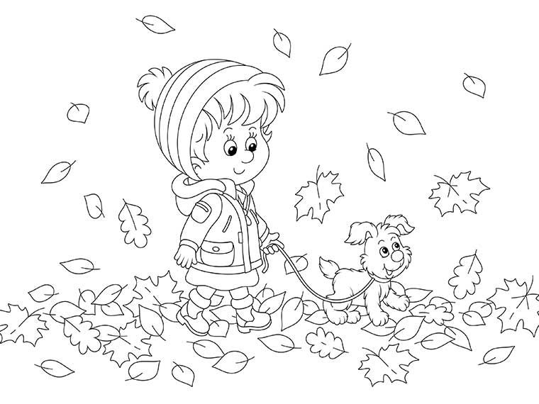 Прогулка с собакой среди осенних листьев