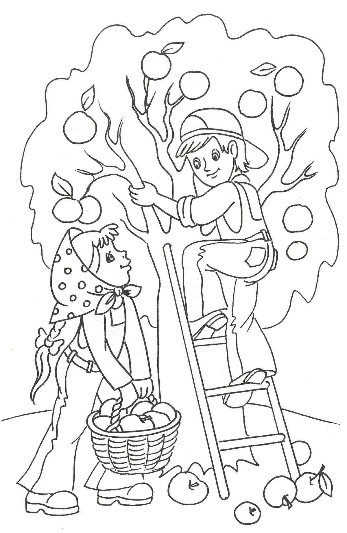Сбор яблок раскраска для детей