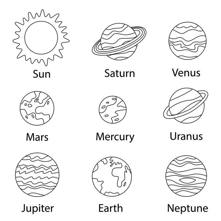 Девять планет Солнечной системы для раскрашивания