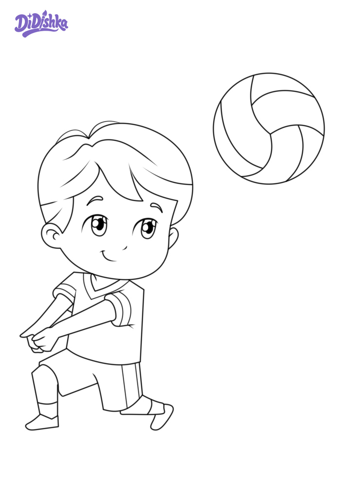 Мальчик играет в волейбол раскраска