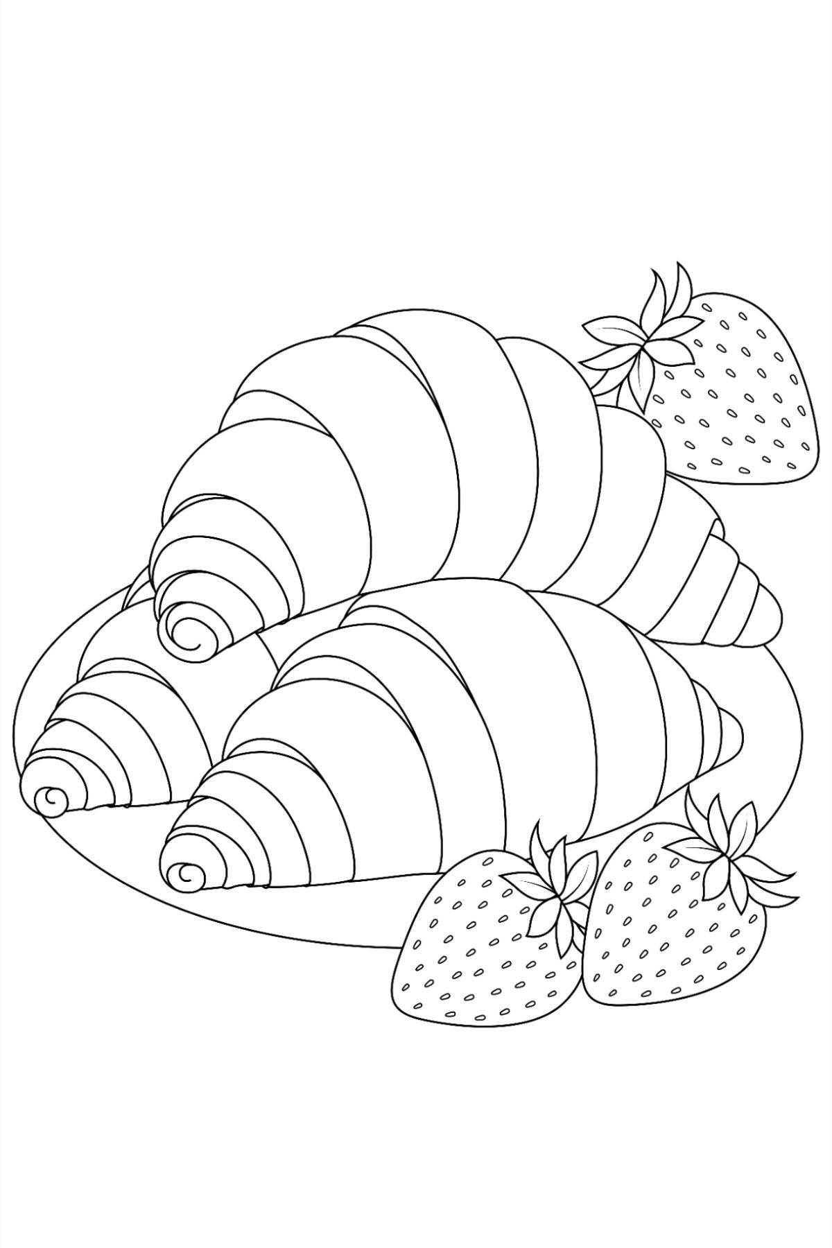 Круассаны с клубникой для разукрашивания