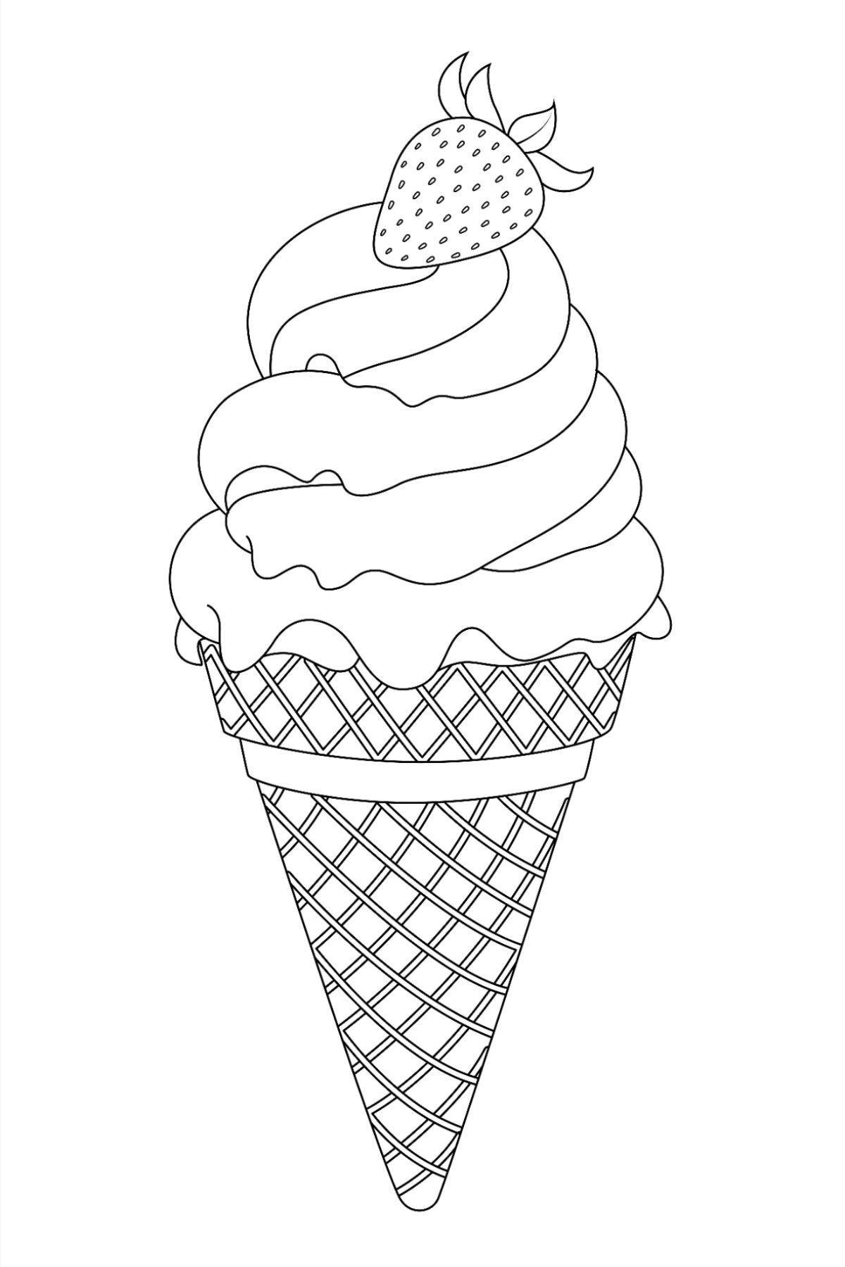 Мороженое с клубникой в вафельном рожке