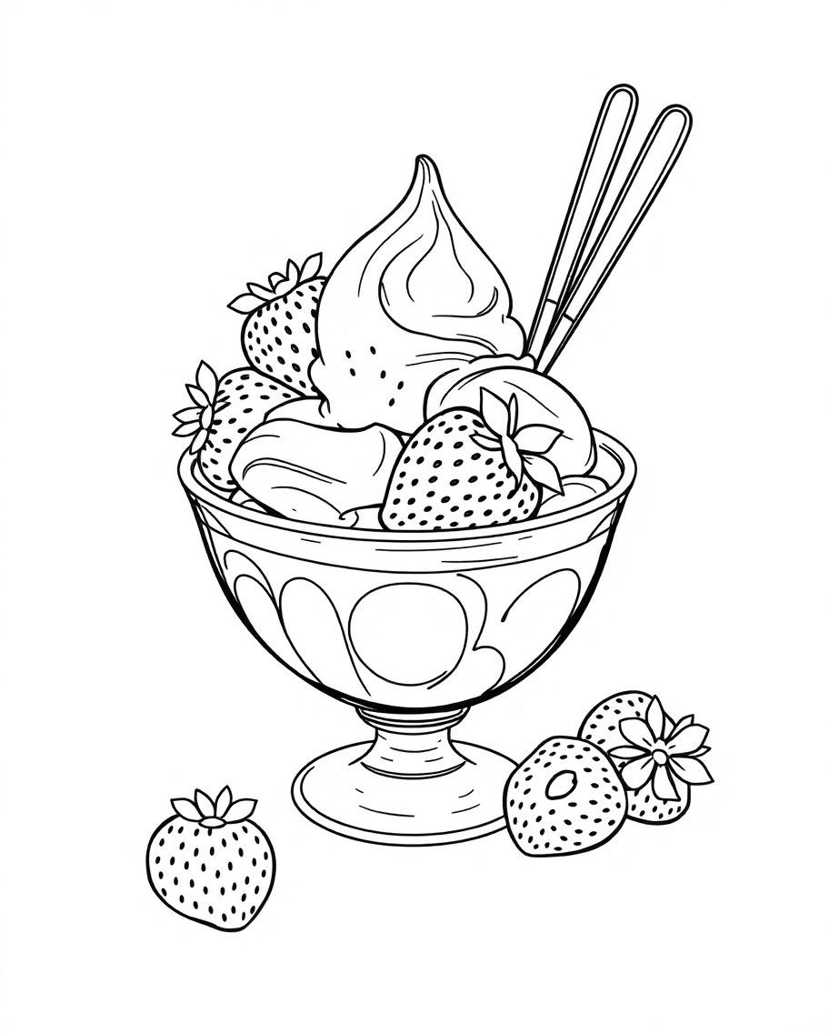 Раскраска клубничного десерта для детей