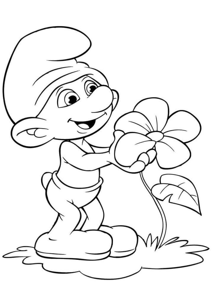 Раскраска смурфика с цветком