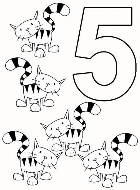 Пять полосатых котиков раскраска с цифрами