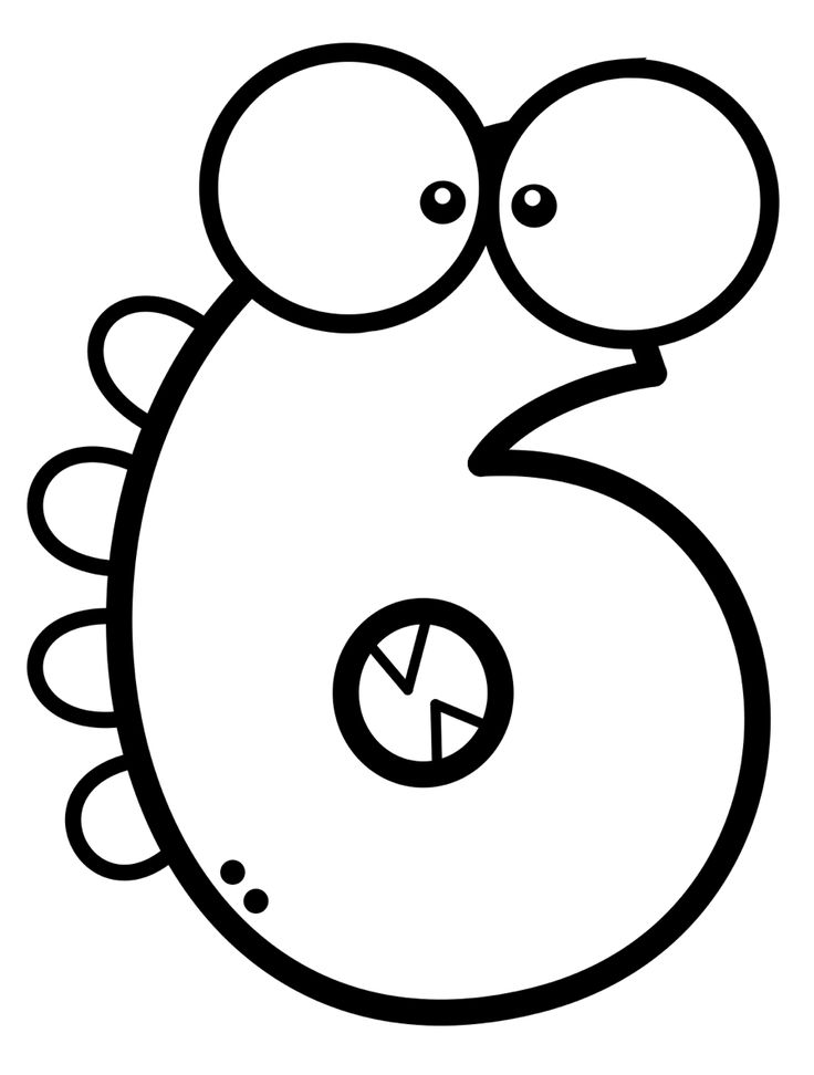 Цифра шесть с большими глазами раскраска