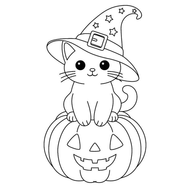 Котейка на тыковке раскраска для детей