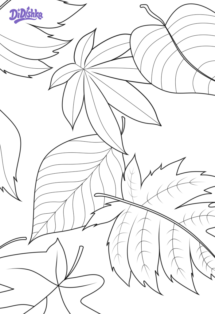 Раскраска листьев на земле для детей