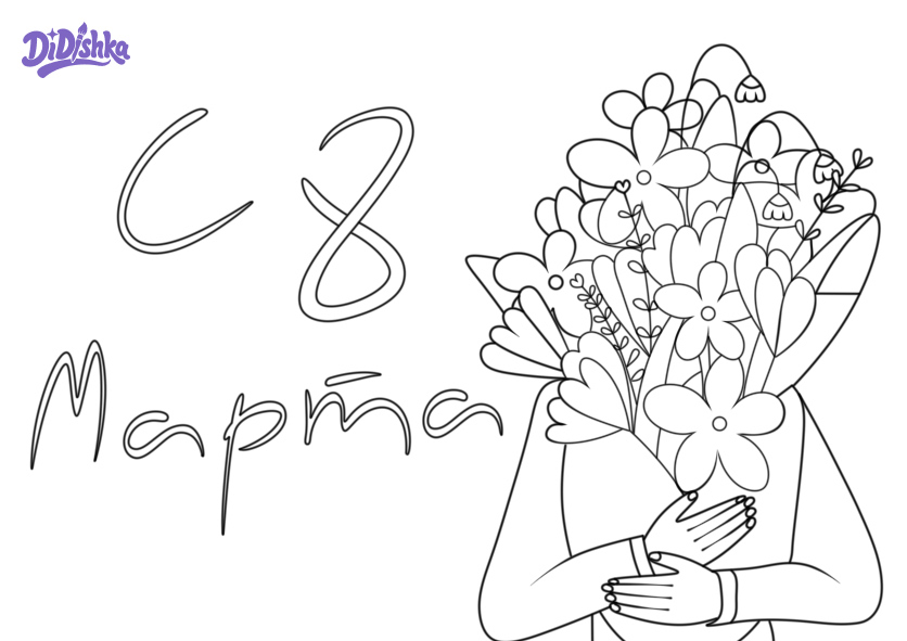 Нежная раскраска открытка на 8 марта