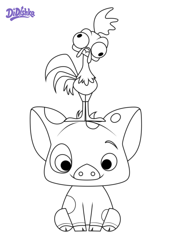Раскраска свинки Пуа и петуха Хей-Хей